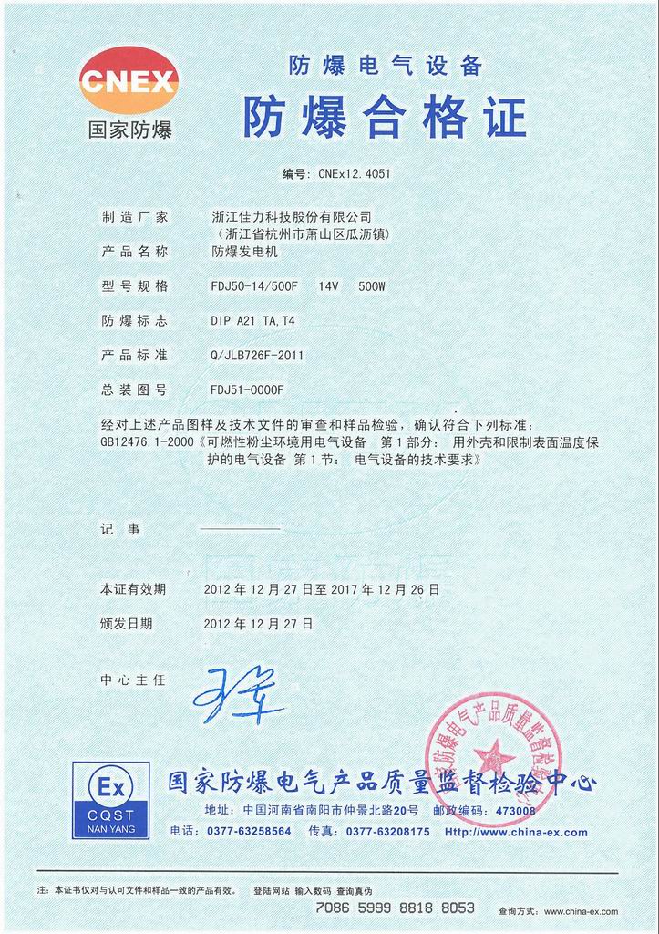 防爆證書>>詳細(xì)信息