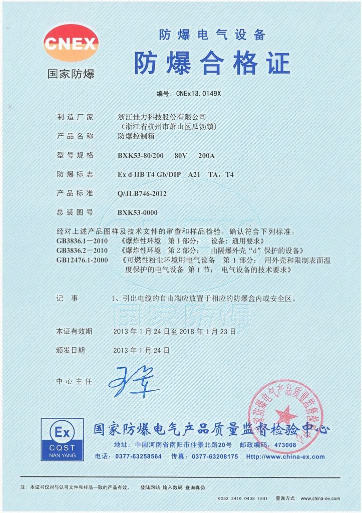 防爆證書>>詳細信息