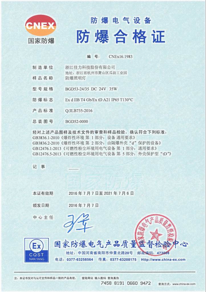 防爆證書>>詳細(xì)信息